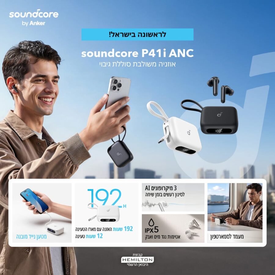 12 חודשי אחריות ושירות ע"י המילטון בע"מ, היבואן הרשמי למוצרי ANKER
