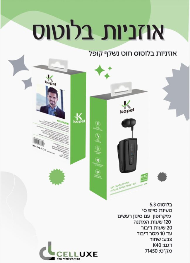 מפרט אוזנית בלוטוס חוט קפיץ דגם K40 מבית Kopel